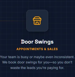 A retailer recorded an early $7,000 sales win just days after launching our Door Swing Domination system. Leads started answering and converting in weeks, not months.
